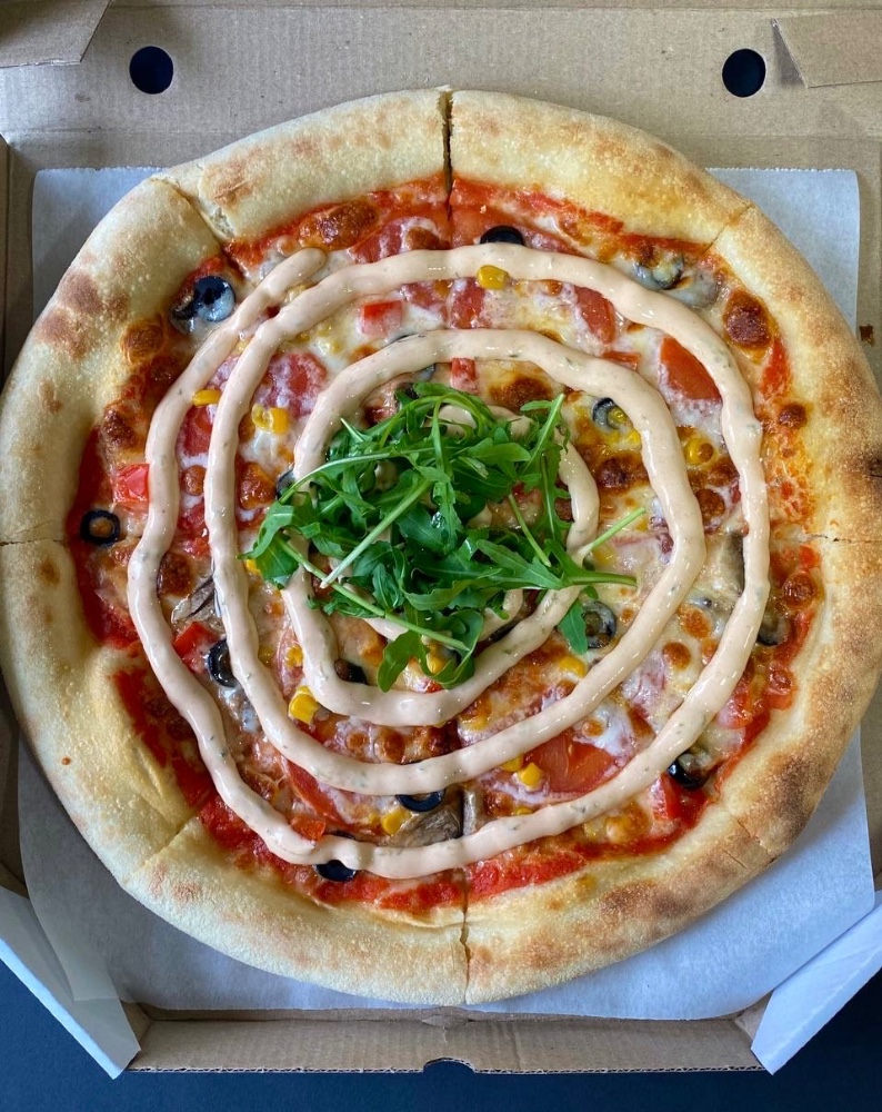 Склад :Сир,лаваш ,помідори,фірмовий соус (власного виробництва)