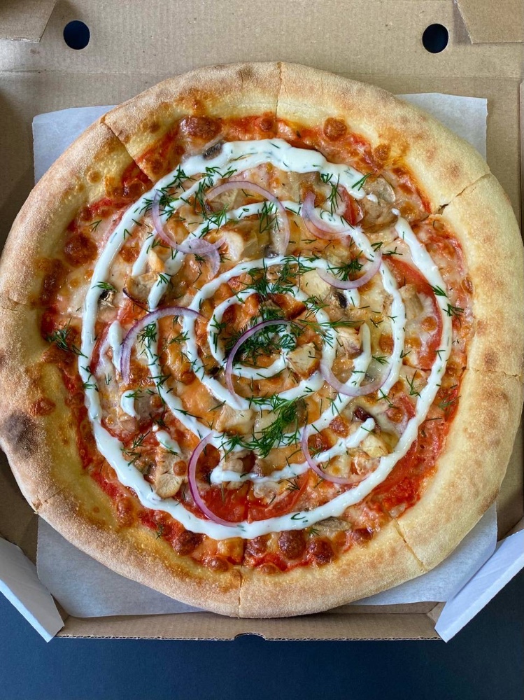 Склад:Мʼясо курки ,лаваш,капуста,помідори,морква,маринована цибуля,фірмовий соус (власного виробництва)
